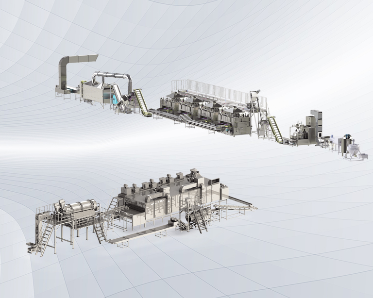 該生產線結合多種堅果加工工藝,一條生產線可加工多種堅果。如:開心果、夏威夷果、碧根果、巴旦木、紙皮核桃、瓜子、鹵味花生果等。1.PLC中央控制系統,自動化程度高。2.可根據客戶需求定制。